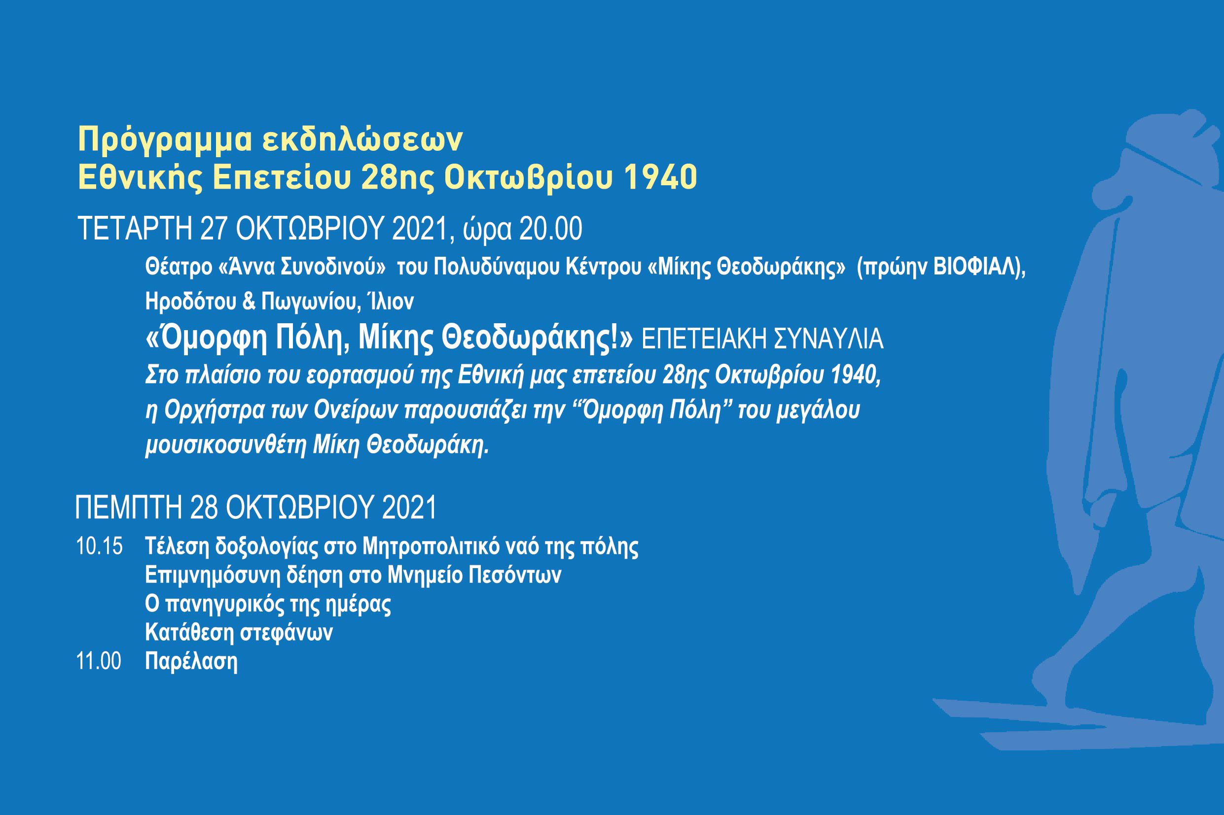 Ο Δήμος Περιστερίου ενημερώνει ότι ματαιώνονται οι επετειακές εκδηλώσεις για την Τετάρτη 27 Οκτωβ