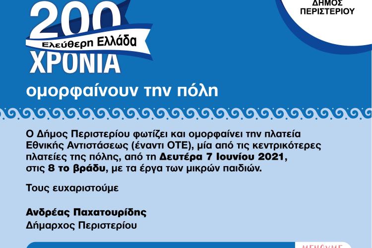 Ο Δήμος Περιστερίου φωτίζει και ομορφαίνει την πλατεία Εθνικής Αντιστάσεως (έναντι ΟΤΕ), μία από