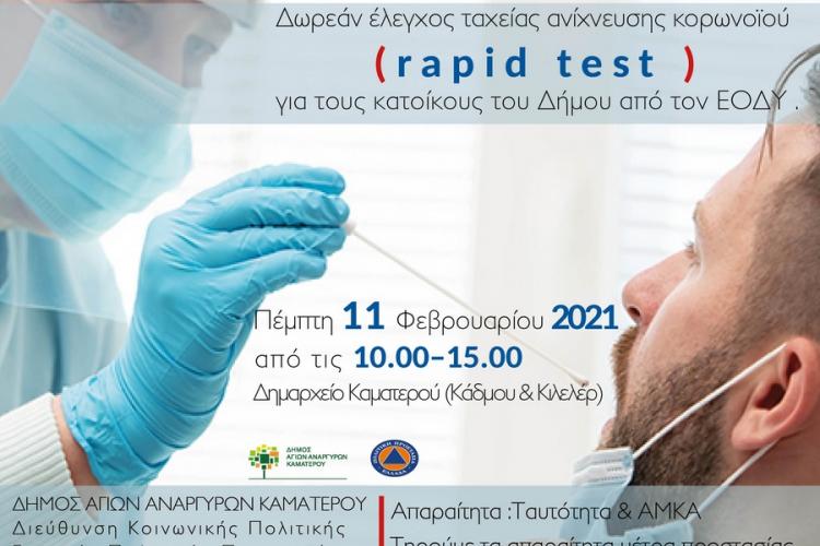Ο Δήμος Αγίων Αναργύρων Καματερού σε συνεργασία με την κινητή Μονάδα του ΕΟΔΥ, στο πλαίσιο των