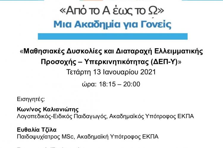 Συνεχίζεται η λειτουργία της Ακαδημίας Γονέων του Δήμου Ιλίου, σε συνεργασία με