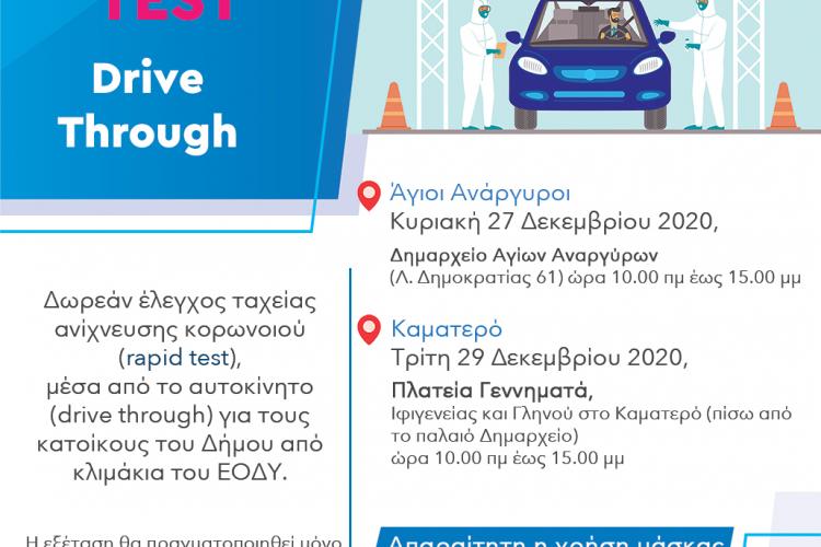Τεστ ταχείας ανίχνευσης κορονοϊού για όλους τους δημότες Αγίων Αναργύρων-Καματερού θα γίνει την