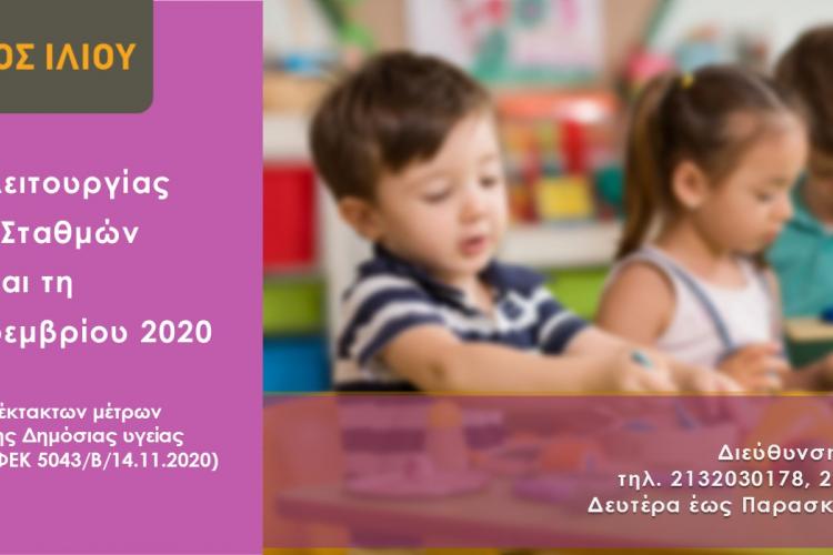 Σε αναστολή λειτουργίας βρίσκονται οι Παιδικοί Σταθμοί του Δήμου Ιλίου από τη Δ