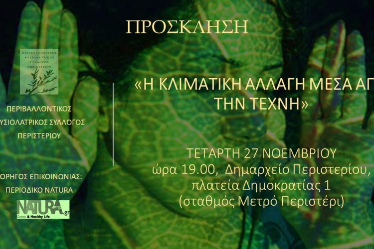 Η εκδήλωση "Η κλιματική αλλαγή μέσα από την τέχνη" θα διεξαχθεί Τετάρτη, 27 Νοεμβρίου,ώρα19.00,στ