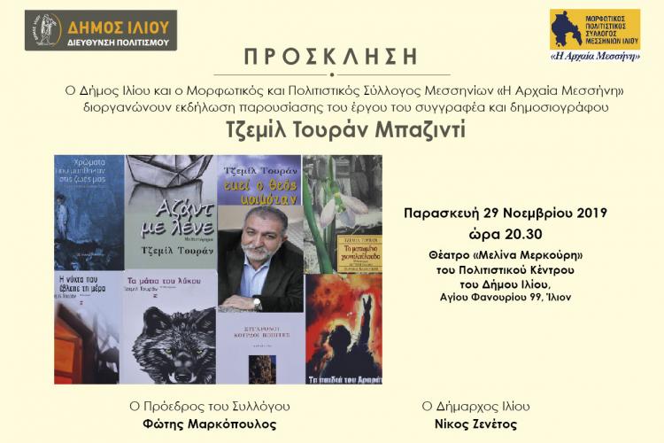 Παρουσίαση του έργου του συγγραφέα Τζεμίλ Τουράν Μπαζιντί στο Ίλιον 0 Σχόλιοs Παρουσίαση του έργρυ του συγγραφέα/δημοσιογράφου Τζεμίλ Τουράν Μπαζιντί θα πραγμNEWS 24