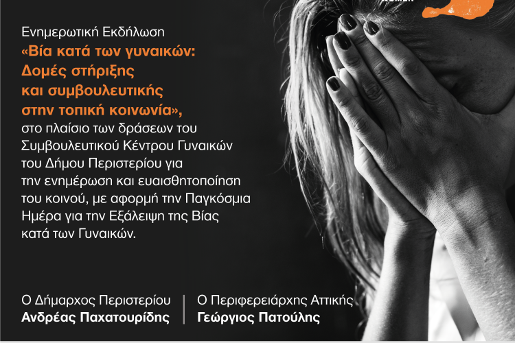Ο Δήμος Περιστερίου οργανώνει την ενημερωτική εκδήλωση "Βία κατά των γυναικών: Δομές στήριξης και