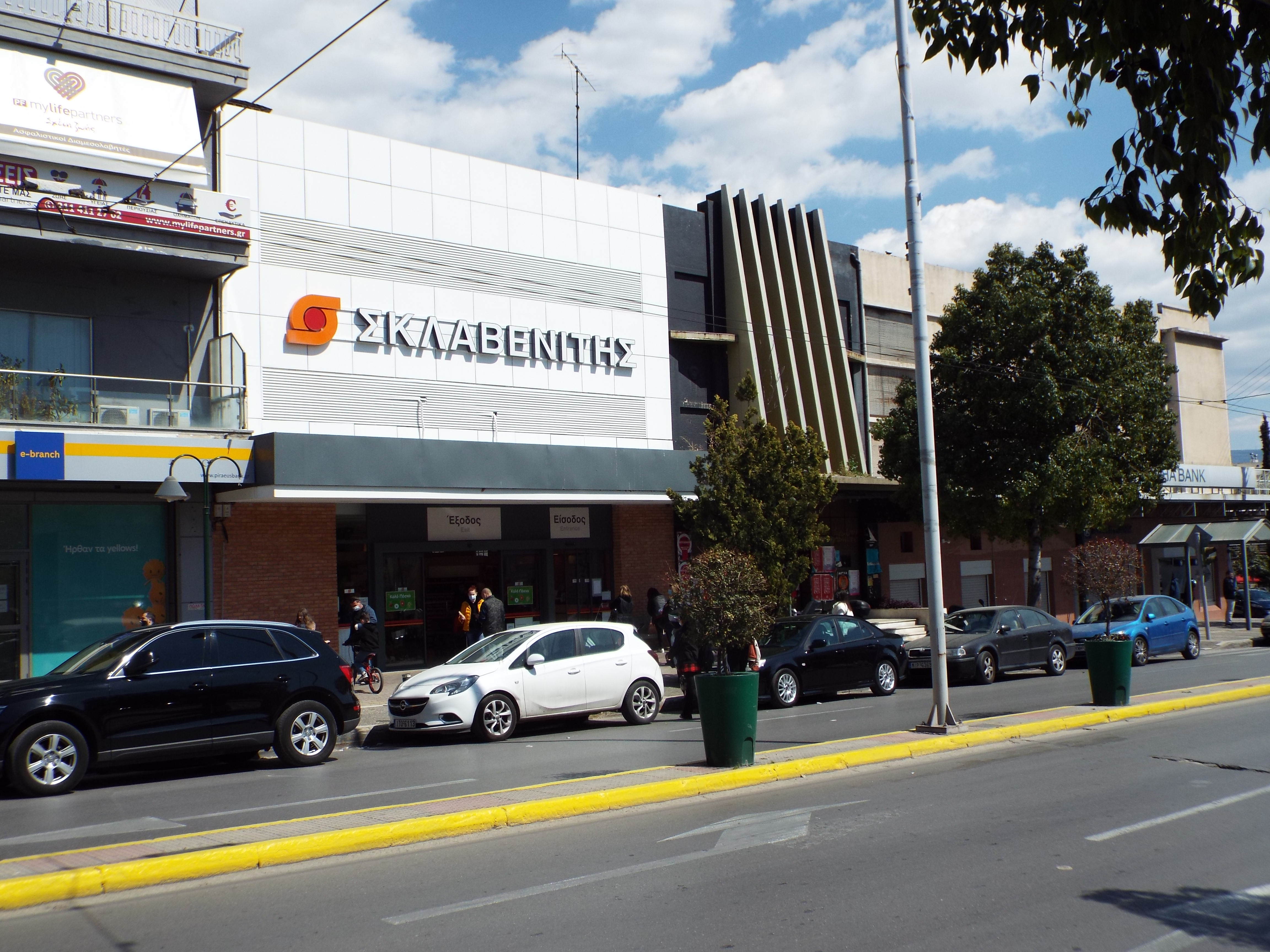 Στη φωτογραφία εικονίζονται οι δύο από τις πιο κεντρικές κινηματογραφικές αίθουσες, η Έλενα και η Ριβιέρα, ακριβώς στο σημείο που σήμερα βρίσκεται το σούπερ μάρκετ Σκλαβενίτης.