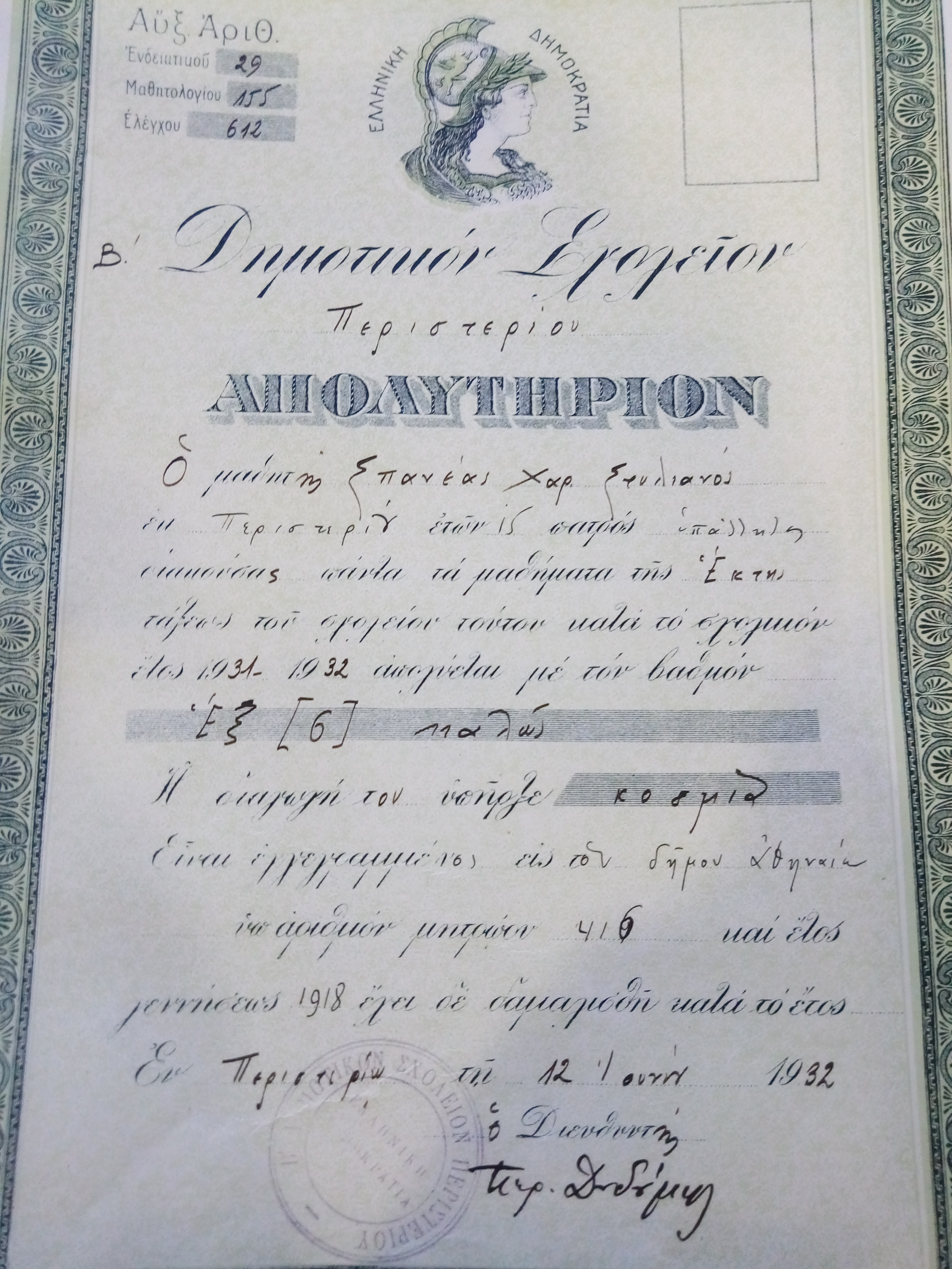 Ο Σεπτέμβρης είναι ο μήνας που συνδέεται πιο στενά απ’ όλους με την έννοια του σχολείου. Είναι ο μήνας που τα σχολεία ξανανοίγουν τις πόρτες τους για τους μαθητές μετά τις καλοκαιρινές διακοπές. Ο μήνας της αγοράς των σχολικών (θυμάμαι που με την κολλητή μου φίλη Δήμητρα πηγαίναμε στο ΑΣΤΕΡΙ, μαγαζί που δεν υπάρχει πια, εκεί που τώρα είναι η Εθνική Τράπεζα επί της Παναγή Τσαλδάρη-και εκστασιασμένες διαλέγαμε τα σχολικά μας είδη, τις μικρές πολύχρωμες γομούλες, τα τετράδια, τις τσάντες μας. Και πόσο μου άρεσε και ακόμα μου αρέσει η μυρωδιά των καινούργιων τετραδίων και βιβλίων.), ο μήνας των μαθημάτων, της επανασύνδεσης της παρέας που χάθηκε προσωρινά το καλοκαίρι, των καθηγητών και δασκάλων που με φορτισμένες τις μπαταρίες τους ξαναμπαίνουν στον «στίβο» της σχολικής αίθουσας για τη μεταλαμπάδευση της γνώσης. Όλα αυτά είναι οι πιο όμορφες και γλυκιές αναμνήσεις για τους περισσότερους από εμάς. Το ίδιο θα προσπαθήσω να κάνω στο άρθρο αυτό, να μεταφέρω αναμνήσεις πολύ παλιών εποχών της πόλης μας, του Περιστερίου, από τα σχολεία του και τους τότε μαθητές του, από τις συνθήκες ζωής τους, εντελώς διαφορετικές που ούτε καν μπορούν να φανταστούν οι σημερινοί νέοι, με υπερβολική αυστηρότητα, έλεγχο της εξωσχολικής τους ζωής, κακουχίες, δυσκολίες, πείνα, σκληρή δουλειά από μικρή ηλικία- ενίοτε 12 και 14 ετών- αλλά και αισιοδοξία και πρόοδο.