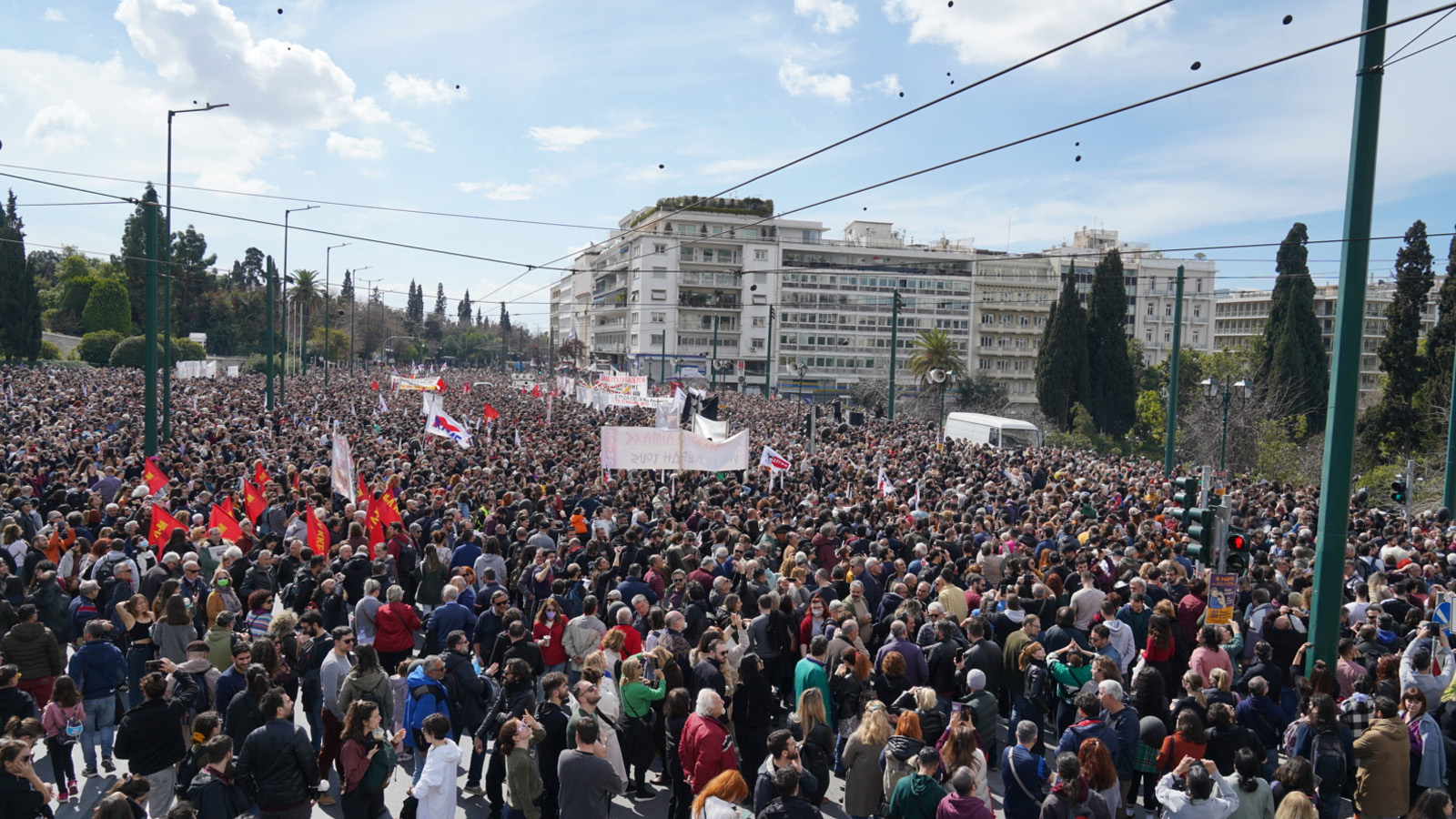 Δεκάδες χιλιάδες εργαζόμενοι, νέοι, νέες, οικογένειες, ηλικιωμένοι και παιδιά κατέκλυσαν το Σύνταγμα και τις γύρω περιοχές, σε ένα τεράστιο συλλαλητήριο, για να διατρανώσουν την οργή τους για το τραγικό δυστύχημα στα Τέμπη και τον αδόκητο θάνατο τόσων πολλών συμπολιτών μας.