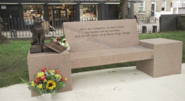 Ένα χρόνο μετά ο Τζέιμς στο συγκεκριμένο παγκάκι που καθόταν με τον Μπομπ και έπαιζαν μουσική τις δύσκολες μέρες πριν την επιτυχία έκανε τα αποκαλυπτήρια ενός μνημείου προς τιμήν του φίλου του.