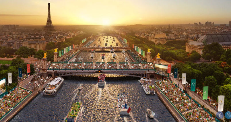 Από τη γέφυρα Αούστερλιτς μέχρι το Τροκαντερό, 6.800 αθλητές και 205 αποστολές, επιβιβασμένες σε 85 σκάφη, άρχισαν να κατεβαίνουν το ποτάμι, κατά τη διάρκεια μιας τελετής διάρκειας 3 ωρών και 45 λεπτών, προοίμιο για δύο εβδομάδες αγώνων μέχρι τις 11 Αυγούστου.