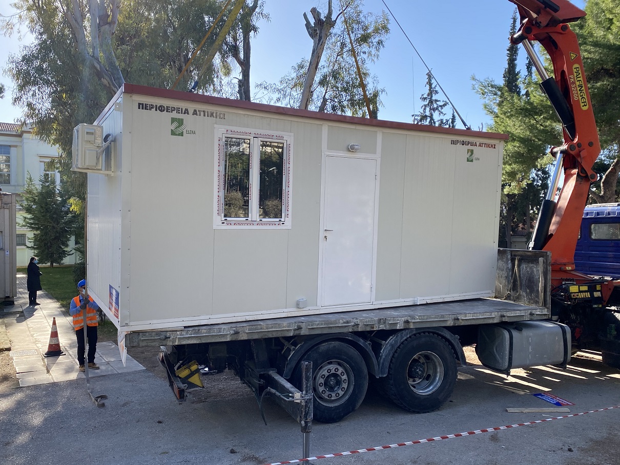 Μετά από αίτημα της Πρώτης και Δεύτερης Υγειονομικής Περιφέρειας Αττικής για την παραχώρηση οικίσκων (ISOBOX)  προκειμένου να καλυφθούν οι αυξημένες ανάγκες  λόγω πανδημίας, με εντολή του Περιφερειάρχη Αττικής Γ. Πατούλη παραχωρούνται 10 ειδικά διαμορφωμένοι οικίσκοι σε νοσοκομεία της Αττικής.