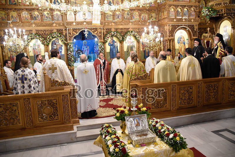 Στον Πανηγυρικό Εσπερινό χοροστάτησε ο Σεβ. Μητροπολίτης Λήμνου κ. Ιερόθεος και συγχοροστάτησαν οι Μητροπολίτες Μεσογαίας κ. Νικόλαος, Φθιώτιδος κ. Συμεών, Νιγηρίας κ. Αλέξανδρος (Πατριαρχείο Αλεξάνδρειας) και ο οικείος Μητροπολίτης Περιστεριού κ. Γρηγόριος.