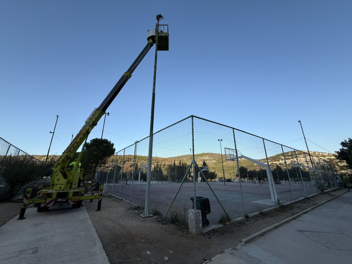 Περατώθηκαν και στο εναπομείναν, από την πρώτη παρέμβαση, τμήμα των εγκαταστάσεων οι εργασίες αντικατάστασης των παλιών προβολέων με νέα φωτιστικά σώματα LED.