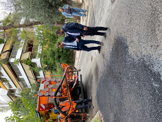 Με τη χρήση ειδικού μηχανήματος που εκτοξεύει θερμό ασφαλτικό υλικό συνεχίζονται οι εργασίες αποκαταστάσεων φθορών οδοστρωμάτων, κλεισίματος λακκουβών κλπ στο Χαϊδάρι.