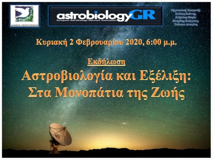 Στα Μονοπάτια της Ζωής στο Σύμπαν μέσω του σύγχρονου διεπιστημονικού κλάδου της Αστροβιολογίας, που μελετά την ύπαρξη της ζωής πέρα από τη Γη, δηλαδή εξωγήινης ζωής, θα μας ταξιδέψουν οι διακεκριμένοι ομιλητές της εκδήλωσης. Θα μας μυήσουν, μέσω της επιστημονικής μεθοδολογίας, στα μυστικά της γενέσεως της ζωής στο σύμπαν, στην εξέλιξη της, καθώς και στην αναζήτηση αυτής πέρα από τη Γη. Ένα ταξίδι αναζήτησης ζωής στο συμπάν σας καλεί… Στο αμφιθέατρο του Νέου Δημαρχείου, Δήμου Περιστερίου!