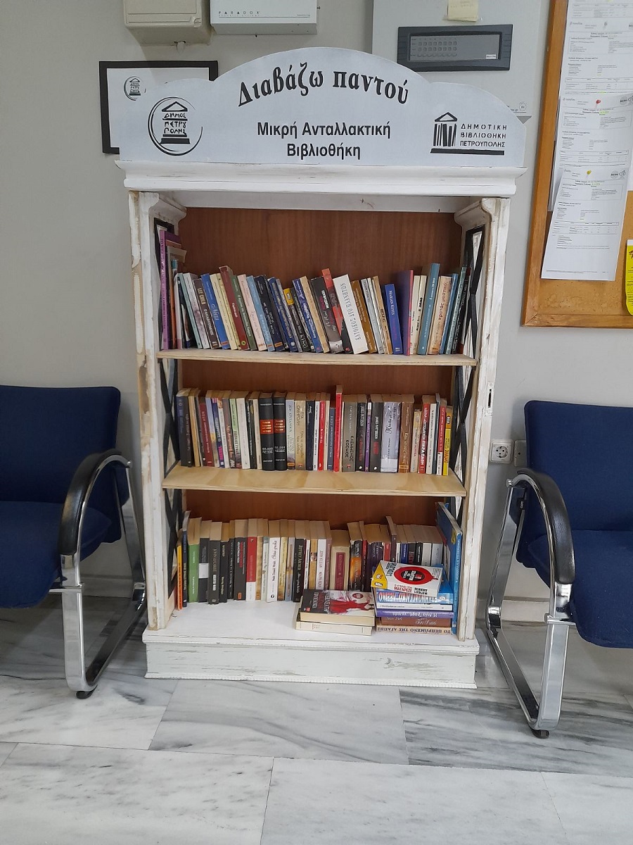 Εντυπωσιακή είναι η ανταπόκριση των φίλων του βιβλίου στη δράση του Δήμου Πετρούπολης, «Διαβάζω παντού», για αυτό αποφασίσαμε να αυξήσουμε τα σημεία όπου μπορεί κάποιος δημότης να ανταλλάξει βιβλία.