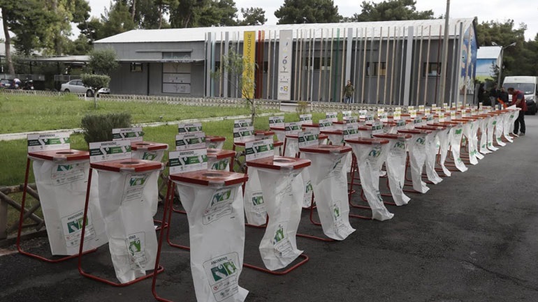 Ο περιφερειάρχης Αττικής Γ. Πατούλης παρέδωσε στους δημάρχους Αγίων Αναργύρων-Καματερού Σ. Τσίρμπα και Πετρούπολης Σ. Βλάχο ειδικούς κάδους εσωτερικής ανακύκλωσης και χωριστής συλλογής πλαστικών, μεταλλικών και χάρτινων συσκευασιών,