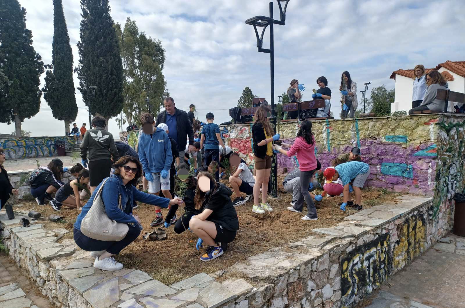 Δήμου, τα παιδιά τοποθέτησαν πεύκα και κυπαρίσσια σε σημεία γύρω από την