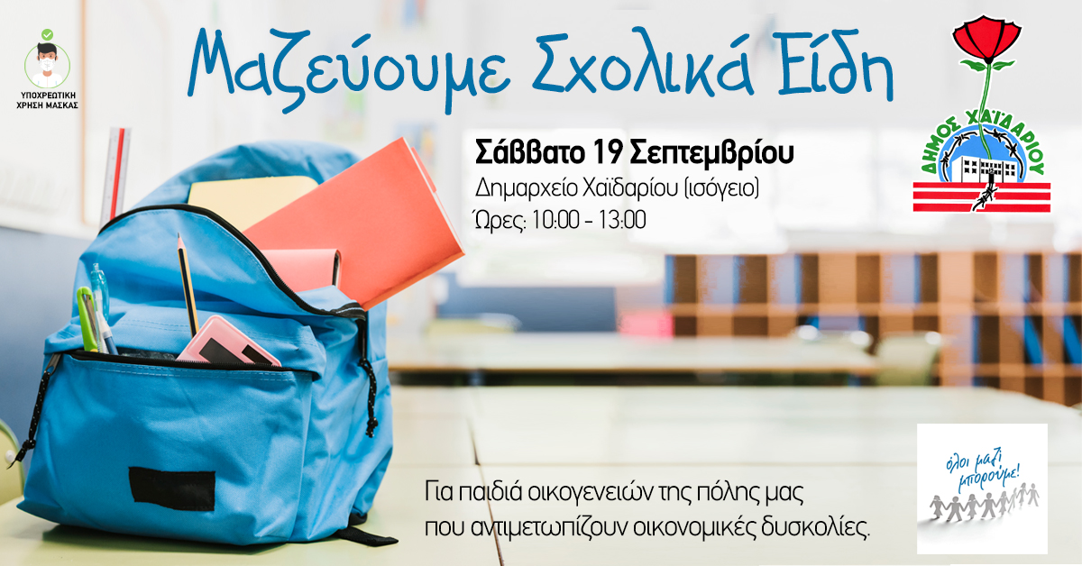 Η Κοινωνική Υπηρεσία του Δήμου Χαϊδαρίου συμμετέχει στη Δράση «ΤΟ ΠΑΙΔΙ ΠΑΝΩ ΑΠΟ ΟΛΟΥΣ» που διοργανώνουν το ΟΛΟΙ ΜΑΖΙ ΜΠΟΡΟΥΜΕ και ο τηλεοπτικός σταθμός ΣΚΑΪ.