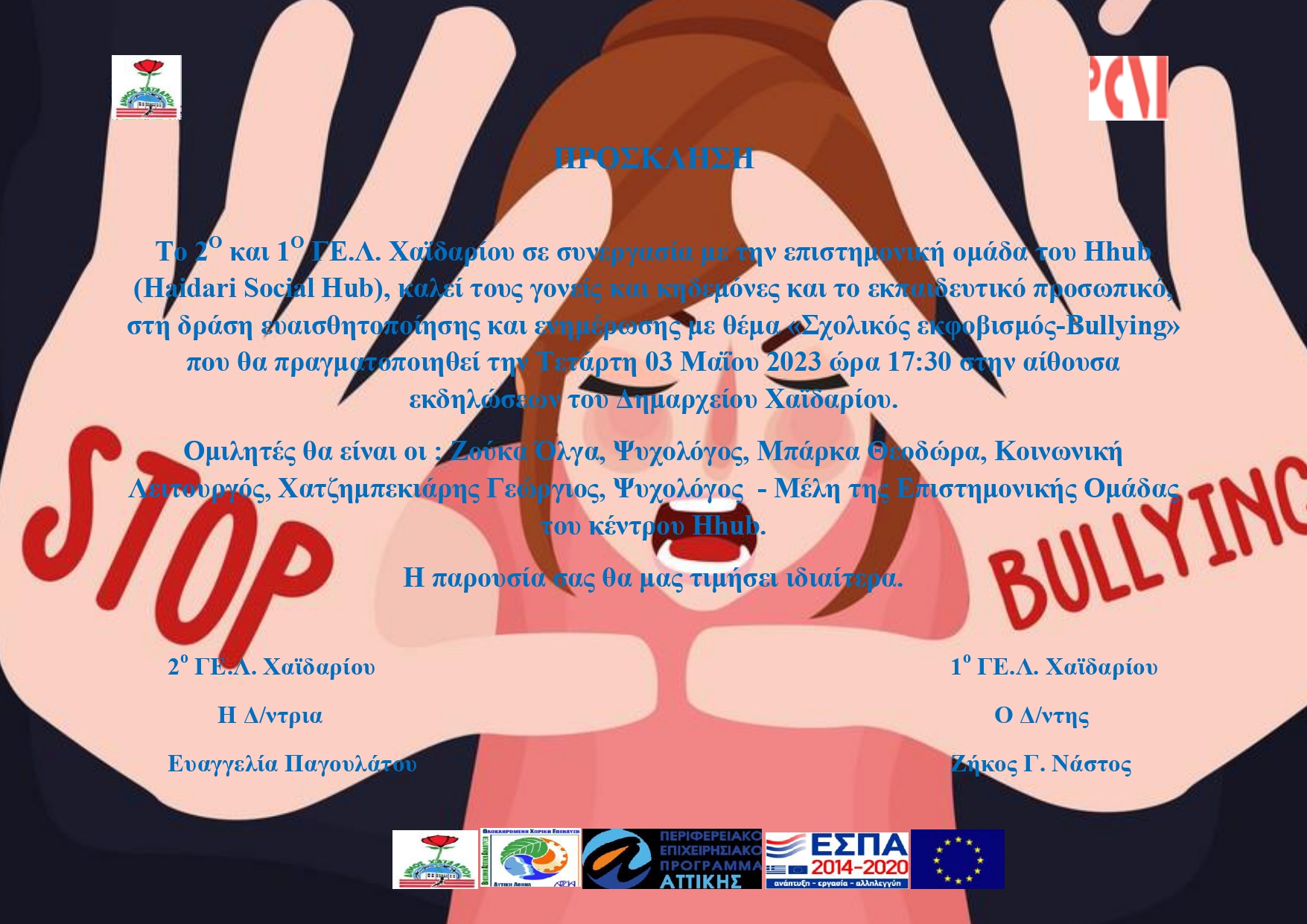 • Δήμος Χαϊδαρίου: Πρόσκληση - Ενημέρωση "Σχολικός εκφοβισμός-Βullying"