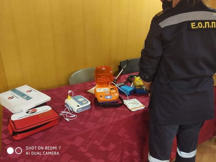 Μετά την εμπεριστατωμένη εισήγηση για το εκπαιδευτικό πρόγραμμα από τις εθελόντριες του ΕΟΠΠ κ.κ. Ειρήνη Μπαϊρακτάρη και Αντιγόνη Μαρούλη, έγινε επίδειξη χρήσης απινιδωτή και δοκιμή από τα μέλη των ποδοσφαιρικών σωματείων.