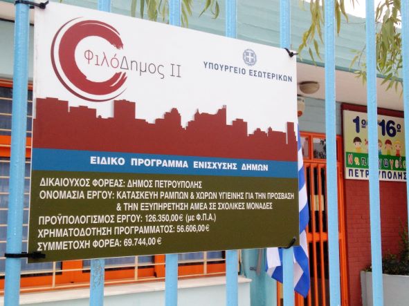 Δήμος Πετρούπολης: Κατασκευή Ραμπών και χώρων υγιεινής για την πρόσβαση και εξυπηρέτηση ΑμεΑ σε σχολικές μονάδες