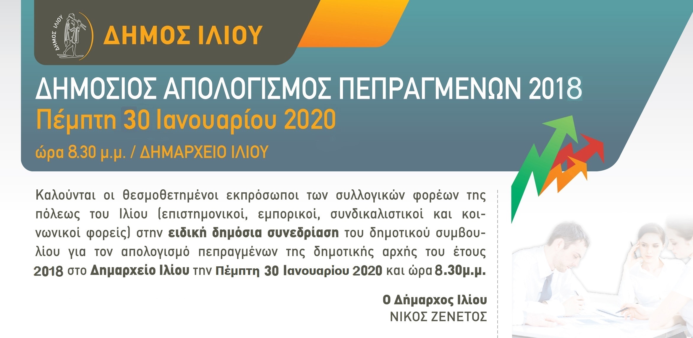 Δημόσιος Απολογισμός Πεπραγμένων 2018 Από life 0 Σχόλιοs Την Πέμπτη 30 Ιανουαρίου, ώρα 8.30 μ.μ., θα πραγματοποιηθεί Δημόσιος Απολογισμός Πεπραγμένων 2018 στο Δημαρχείο Ιλίου. NEWS 24 Συντάκτης Δημοσιογραφική ομάδα LIFE