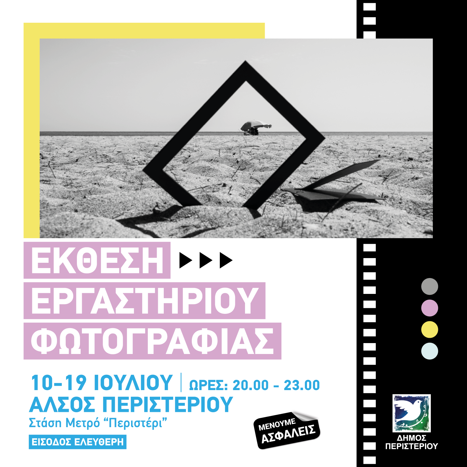 Ο Δήμος Περιστερίου διοργανώνει την ετήσια Έκθεση του Δημοτικού Εργαστηρίου Φωτογραφίας με πρώτη προτεραιότητα την υγεία και την ασφάλεια όλων, στο ωραιότερο Άλσος της Αττικής, στο Άλσος Περιστερίου (στάση Μετρό «Ανθούπολη») από τις 10 έως τις 19 Ιουλίου 2020 και ώρες 20:00 – 23:00.