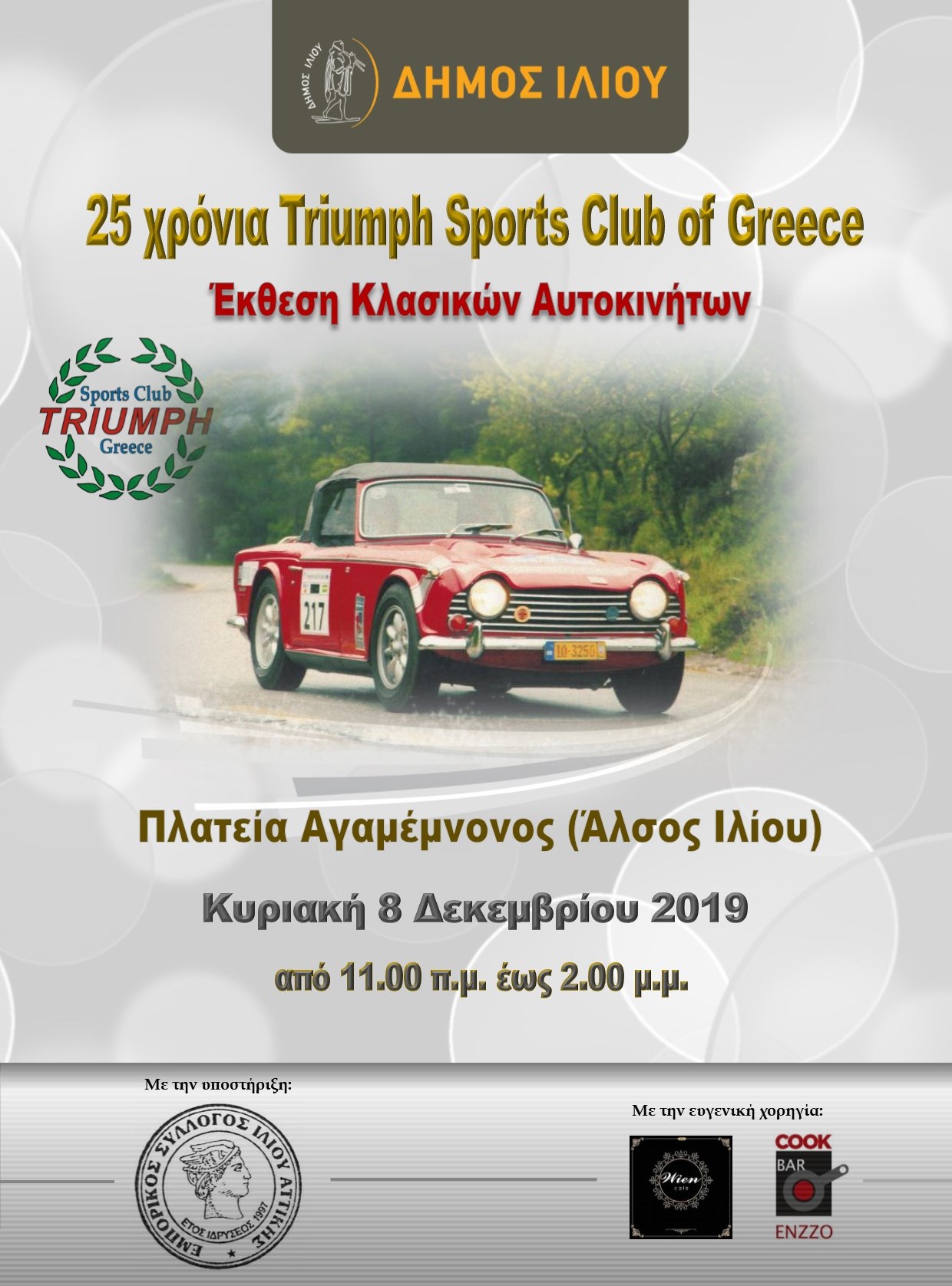 Η Έκθεση Κλασικών Αυτοκινήτων θα πραγματοποιηθεί την Κυριακή 8 Δεκεμβρίου, από 11.00 π.μ μέχρι 2.00 μ.μ.