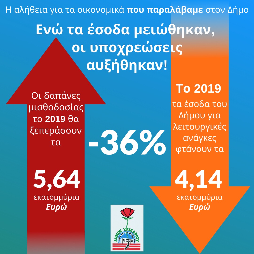 «Αμέσως μετά την ανάληψη των καθηκόντων μας ως νέα Διοίκηση του Δήμου Χαϊδαρίου, ξεκινώντας την κατάρτιση του σχεδίου Προϋπολογισμού του 2020 βρεθήκαμε αντιμέτωποι με μια πολύ δύσκολη οικονομική πραγματικότητα.