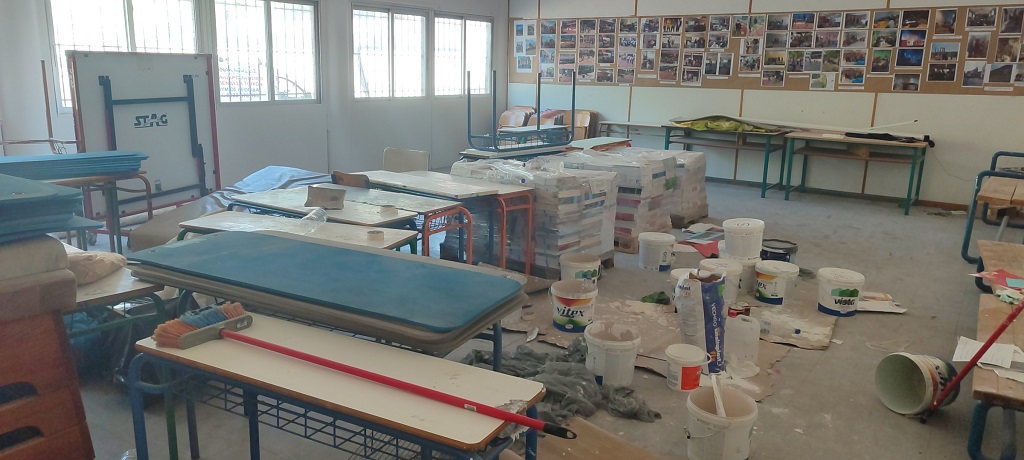 Συγκεκριμένα, είναι σε εξέλιξη -και θα έχουν ολοκληρωθεί έγκαιρα για την έναρξη της νέας σχολικής χρονιάς- εργασίες ελαιοχρωματισμών, συντηρήσεων και επισκευών σε ηλεκτρολογικές και υδραυλικές εγκαταστάσεις, αποκαταστάσεις των αύλειων χώρων κ.ά.