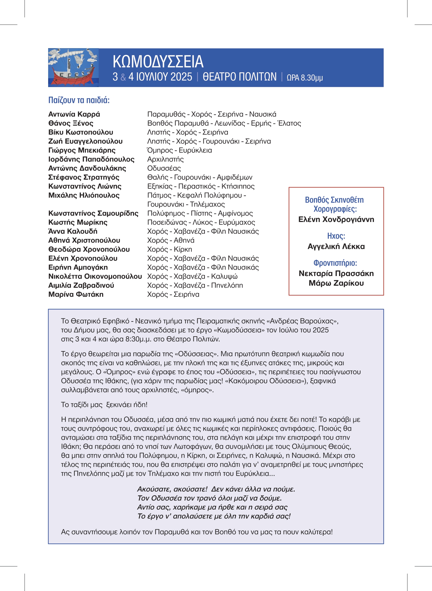 Ημέρες Παραστάσεων: Πέμπτη 3 & Παρασκευή 4 Ιουλίου 2025