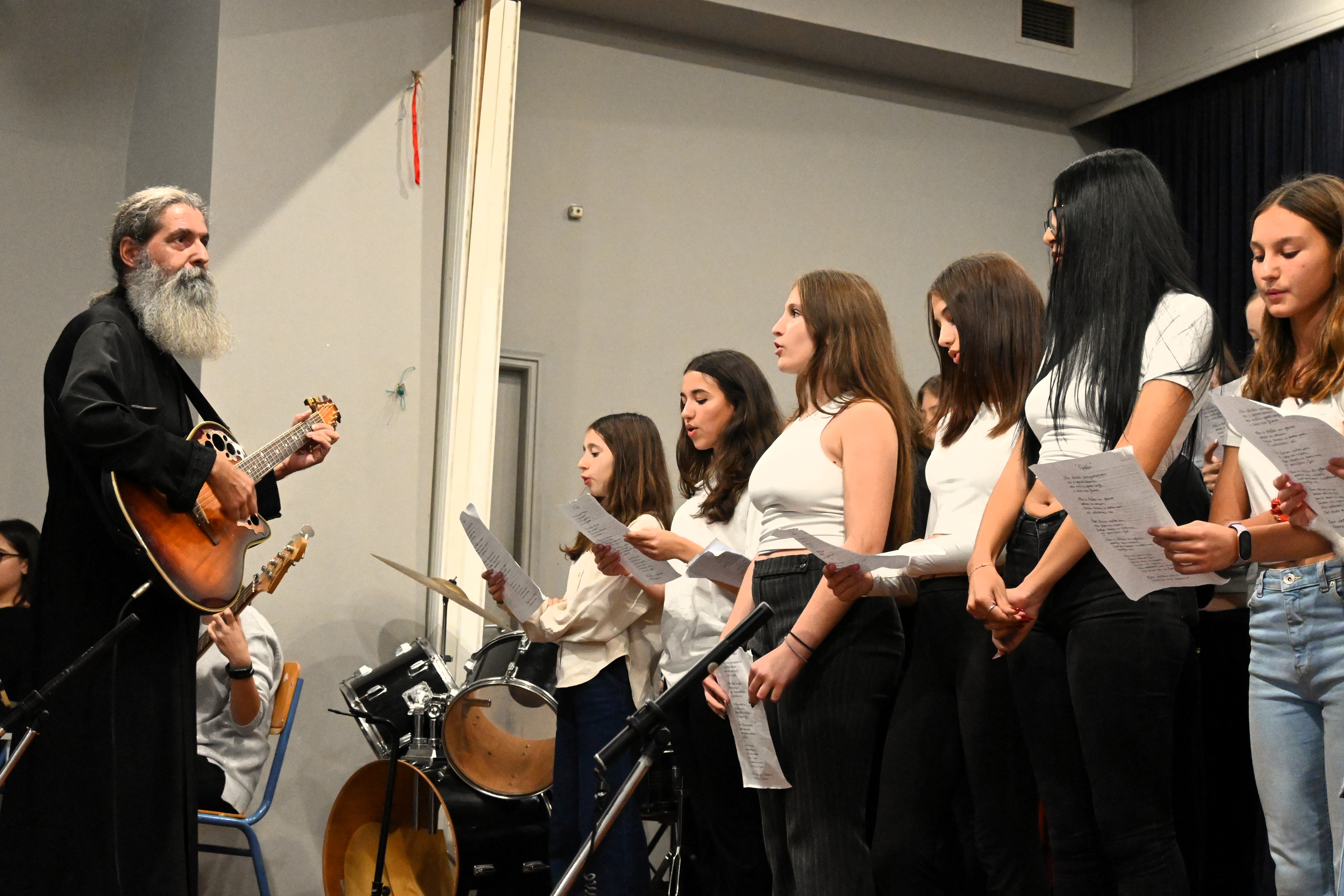 Η εκδήλωση ολοκληρώθηκε με τραγούδια από τη χορωδία του 4ου Γυμνασίου Αιγάλεω, προσδίδοντας ένα συγκινητικό κλείσιμο: αρχικά με το «Όλες απαντάμε αν αγγίξεις μια…», απόδοση στα ελληνικά του μεξικάνικου τραγουδιού Vivir Quintana, και στη συνέχεια με το «Ένα γράμμα», σε στίχους και μουσική του Πατρός Δημητρίου Κατσουρού, καθηγητή μουσικής του σχολείου.