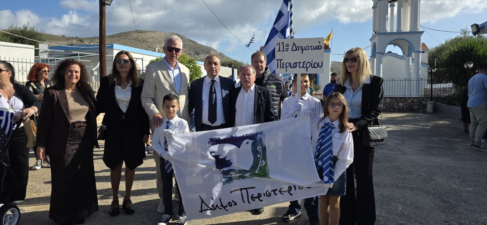 Ανήμερα της Εθνικής Επετείου, ο Δήμαρχος Περιστερίου κατέθεσε στεφάνι στο Μνημείο των Ηρώων στην Ψέριμο, καθώς και στην Κάλυμνο, παρουσία των τοπικών αρχών και παρακολούθησε τη στρατιωτική παρέλαση.