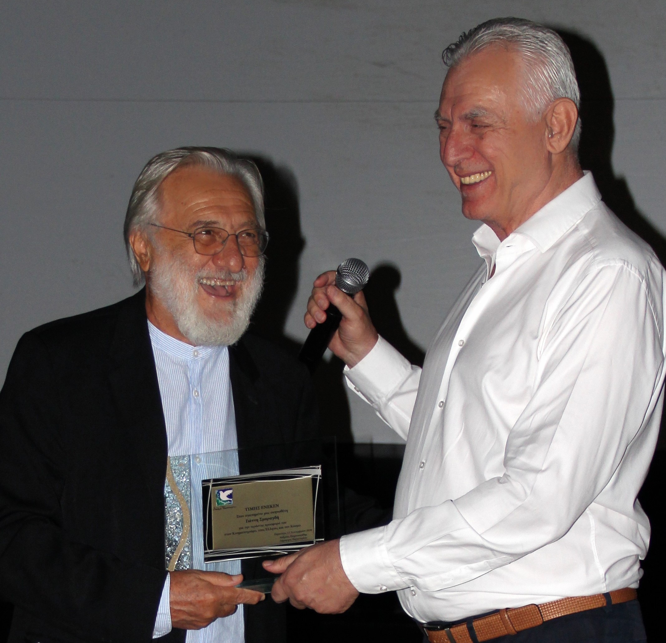 Ο κ. Παχατουρίδης απένειμε τιμητική πλακέτα με το σύμβολο του Δήμου Περιστερίου στον κ. Σμαραγδή για την τεράστια προσφορά του, στον κινηματογράφο, στην χώρα μας και σε παγκόσμιο επίπεδο.