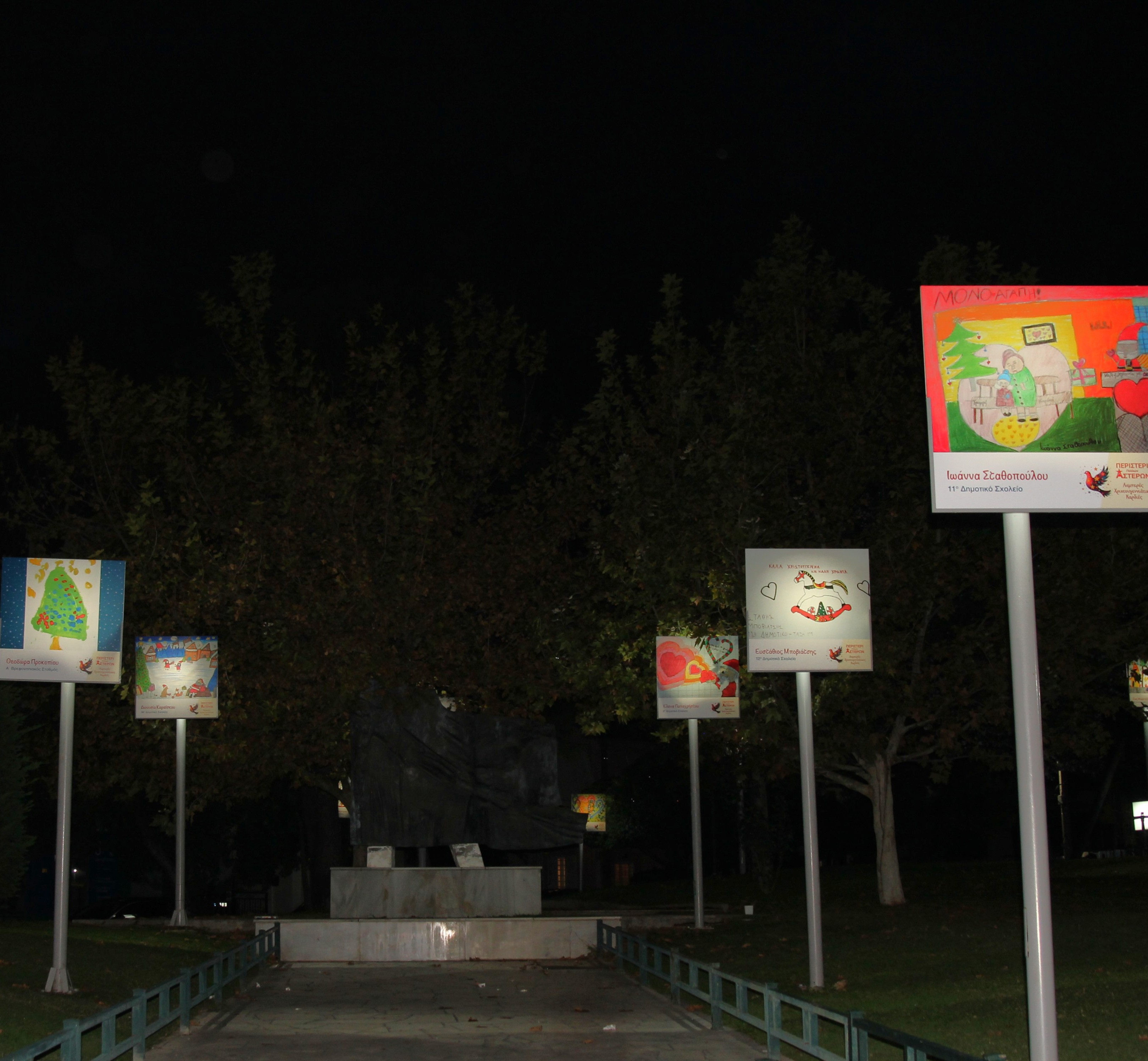 Ο Δήμος Περιστερίου φωτίζει και ομορφαίνει με τα έργα των μικρών ζωγράφων με θέμα: «Περιστέρι Πολλών Αστέρων - Λαμπερές Χριστουγεννιάτικες καρδιές», μία από τις κεντρικότερες πλατείες της πόλης, την πλατεία Εθνικής Αντιστάσεως (έναντι ΟΤΕ) από τις 4 Δεκεμβρίου 2024 έως και τις 6 Ιανουαρίου 2025.