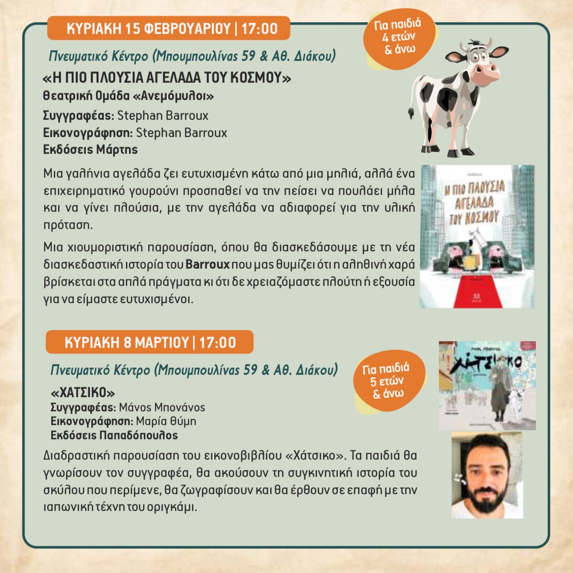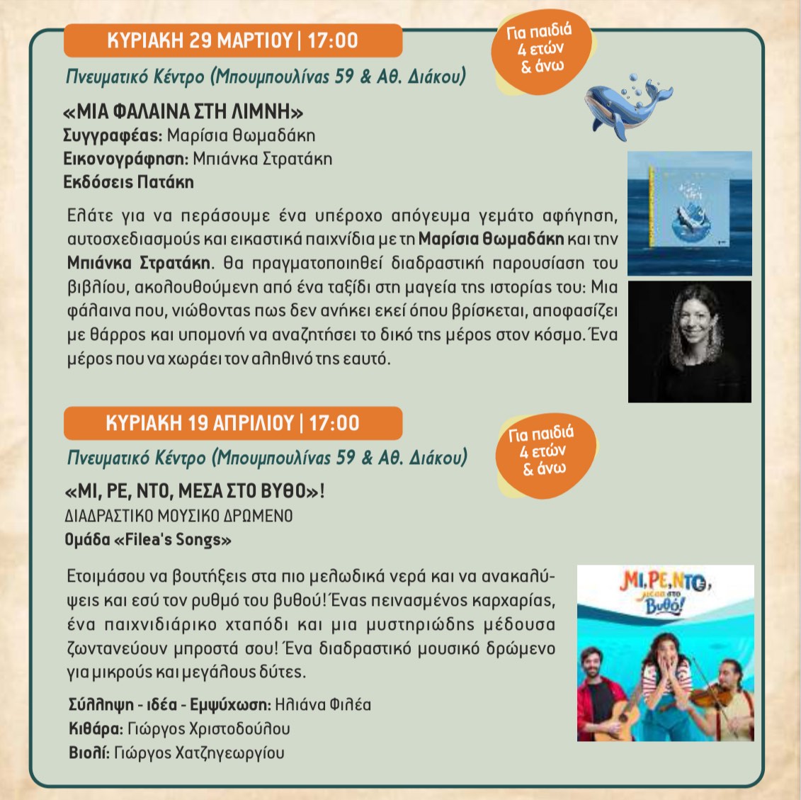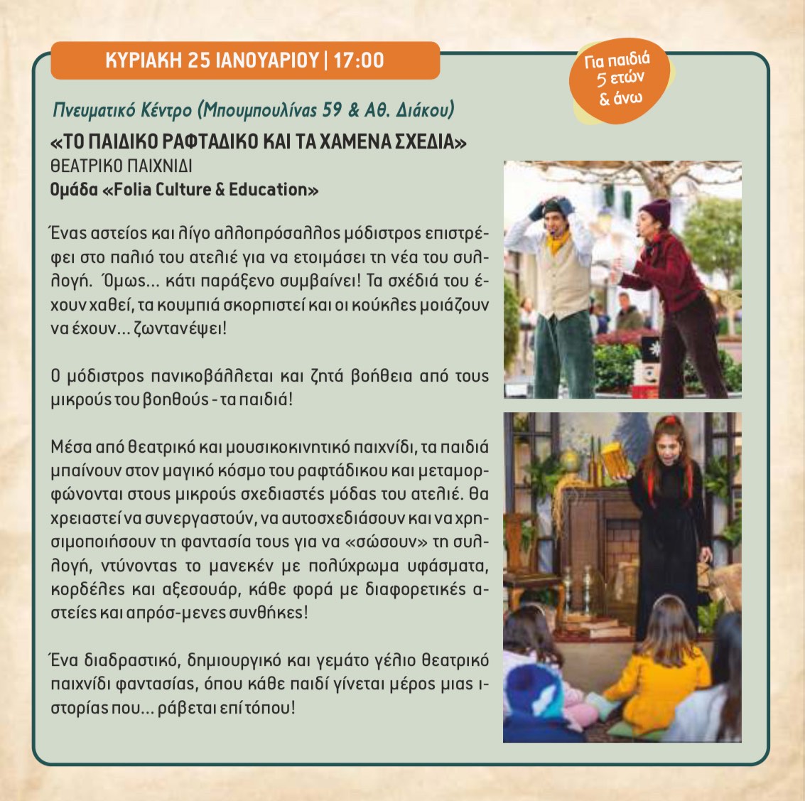 Από τον Γενάρη έως τον Απρίλιο οι Κυριακές μας θα έχουν πολύ φαντασία, γέλιο, θεατρικές δράσεις, μουσικά παιχνίδια και αφηγήσεις ιστοριών.