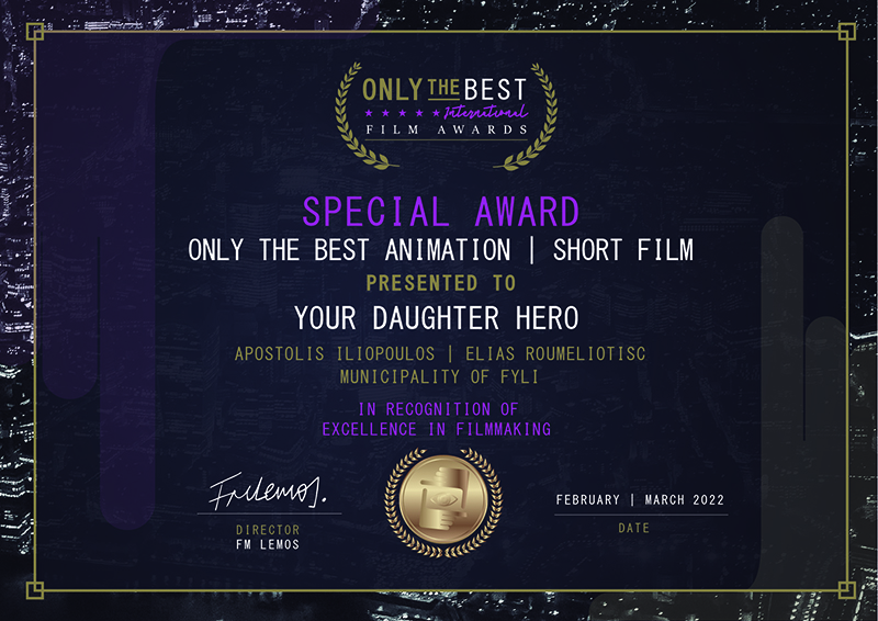 Βγαίνει από τα σύνορα της Ελλάδας η ταινία “Your Daughter Hero” για το περιβάλλον, μια ιδέα από τη μαθήτρια του 1ου Λυκείου Άνω Λιοσίων Μαρίνα Λινάρδου, που πραγμάτωσε και σκηνοθέτησε ο σκηνοθέτης Αποστόλης Ηλιόπουλος, σε συνεργασία με το βραβευμένο Animation studio “Brosinarts” και την υποστήριξη του ευρωπαϊκού προγράμματος Walk the Global Walk.