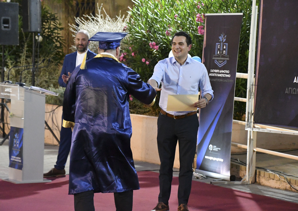 Μέσα σε ένα πανηγυρικό κλίμα πραγματοποιήθηκε η τελετή λήξης του Ελεύθερου Δημοτικού Ανοικτού Πανεπιστημίου του Δήμου Αγίων Αναργύρων-Καματερού στον προαύλιο χώρο του 1ου Δημοτικού Σχολείου Αγίων Αναργύρων την Τετάρτη 22 Ιουνίου 2022.