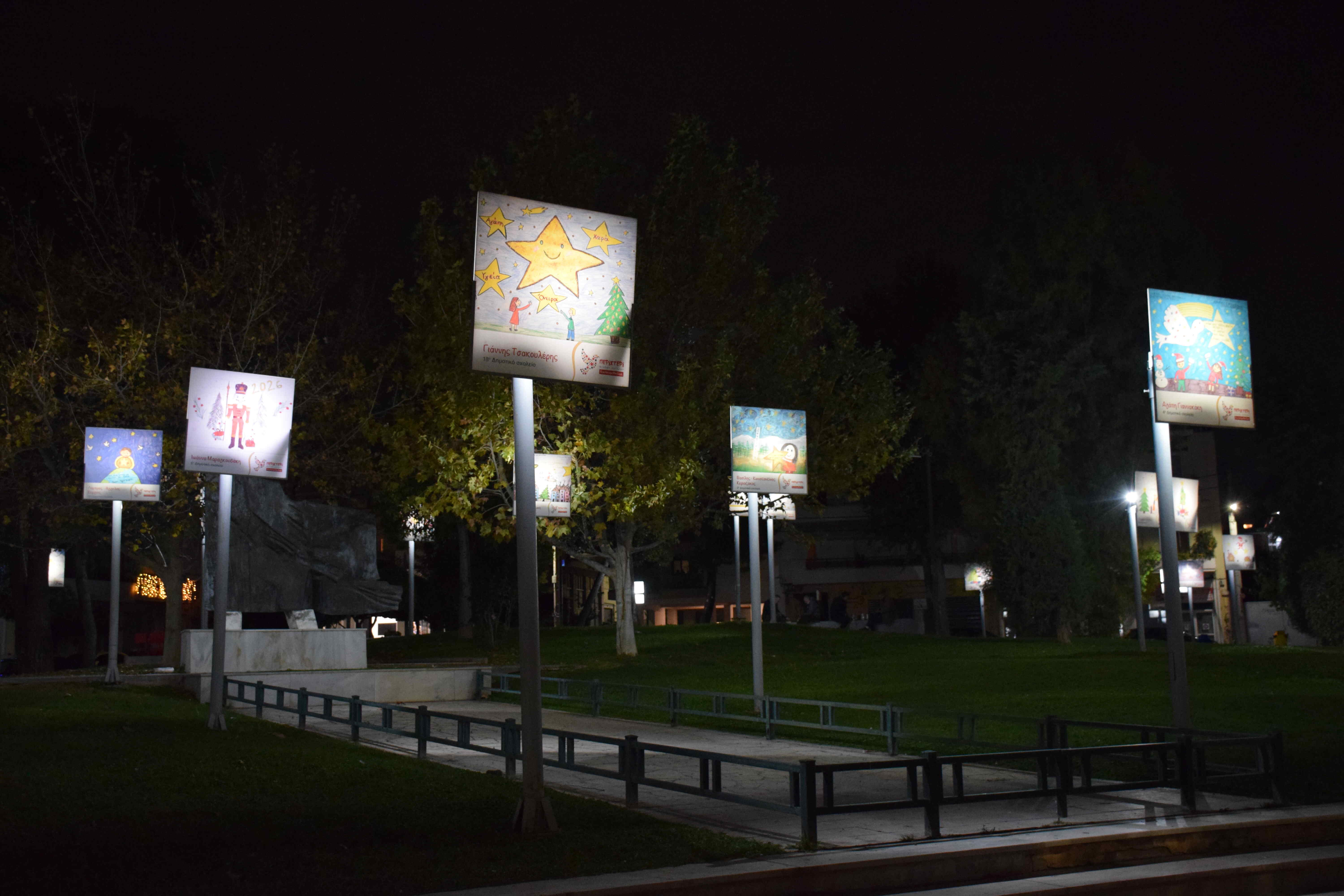 Ο Δήμος Περιστερίου, στο πλαίσιο των Χριστουγεννιάτικων δράσεων «Περιστέρι Πολλών Αστέρων», φωτίζει και ομορφαίνει και φέτος έναν από τους πιο κεντρικούς δημόσιους χώρους της πόλης, την πλατεία Εθνικής Αντιστάσεως (έναντι ΟΤΕ), με τα έργα των μικρών δημιουργών, μέσα από την εικαστική δράση με θέμα: «Ένα Αστέρι, Μια Ευχή», για όλη την εορταστική περίοδο.