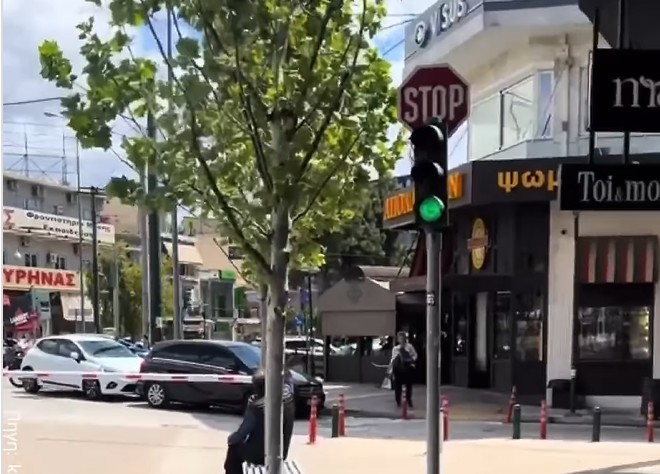 Ένα φανάρι που βρίσκεται στο τέλος του πεζοδρομημένου τμήματος της οδού Εθνικής Αντιστάσεως και εκ πρώτης όψεως δεν έχει κανέναν λόγο ύπαρξης!