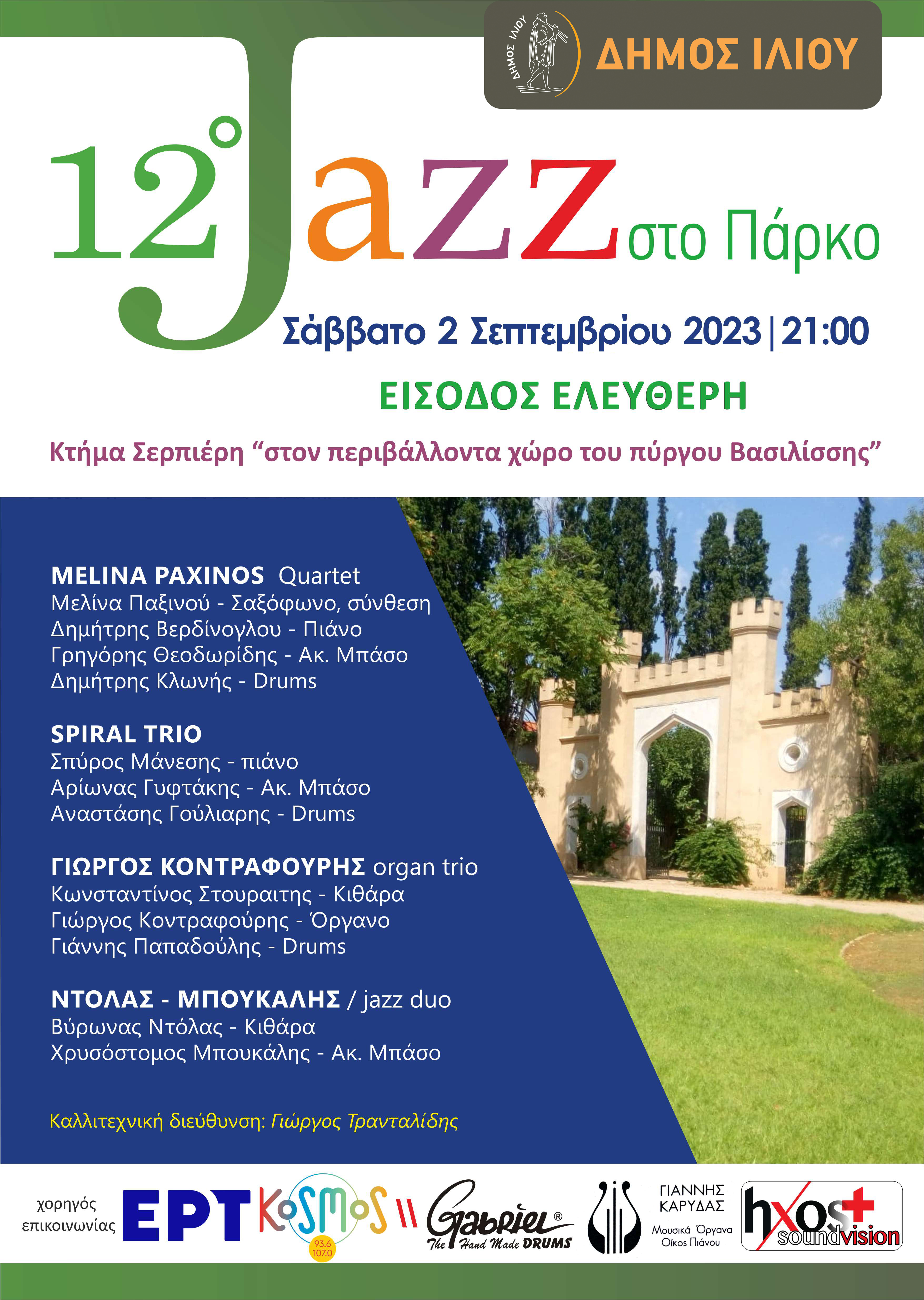 φέτος παραχωρεί δωρεάν και ευγενικά τον χώρο που θα φιλοξενηθεί το “12 ο Jazz στο Πάρκο”».