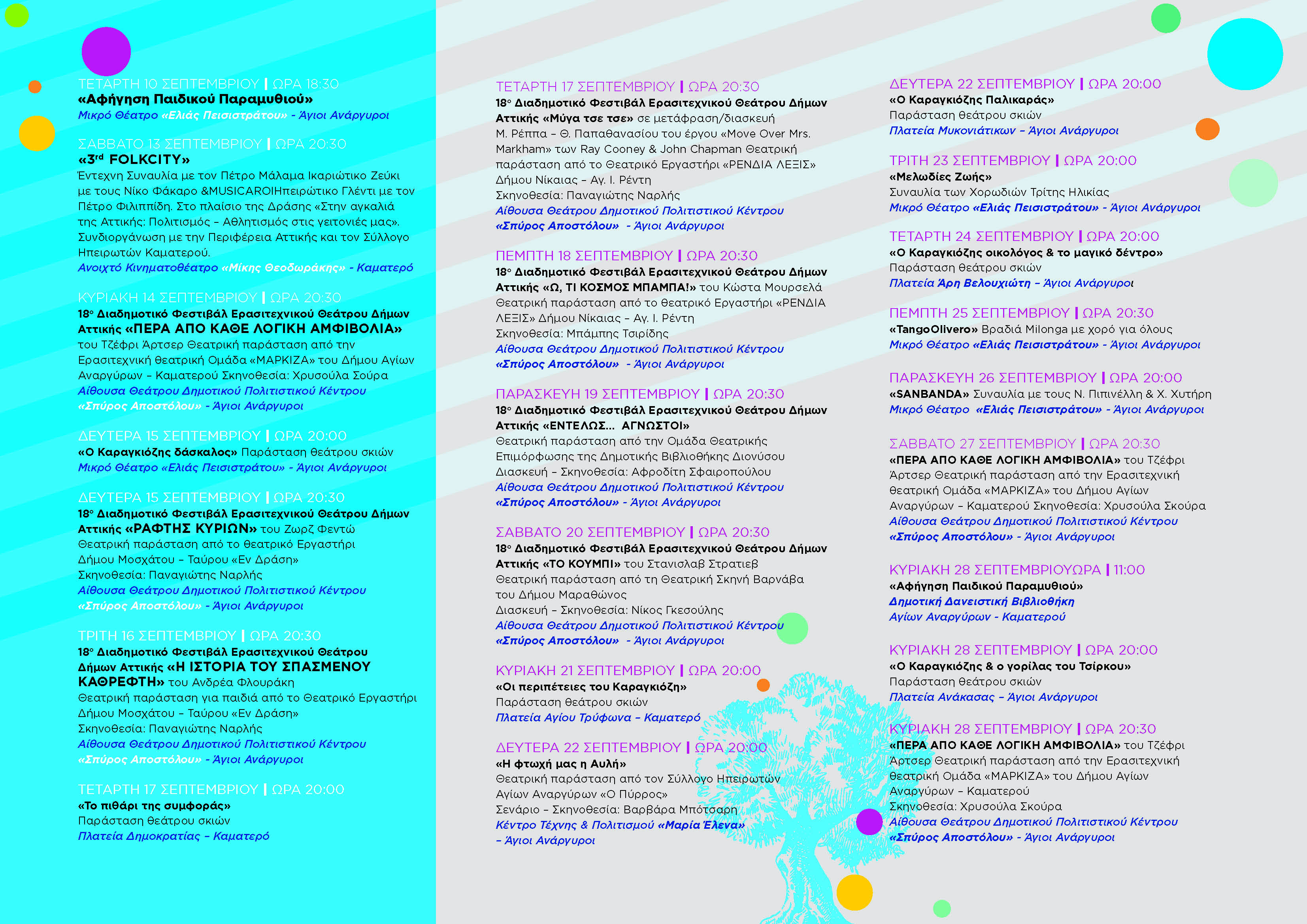 Πραγματοποιούνται σε 10 σημεία της πόλης μας (πλατείες, ανοιχτά θέατρα και πολιτιστικούς χώρους).