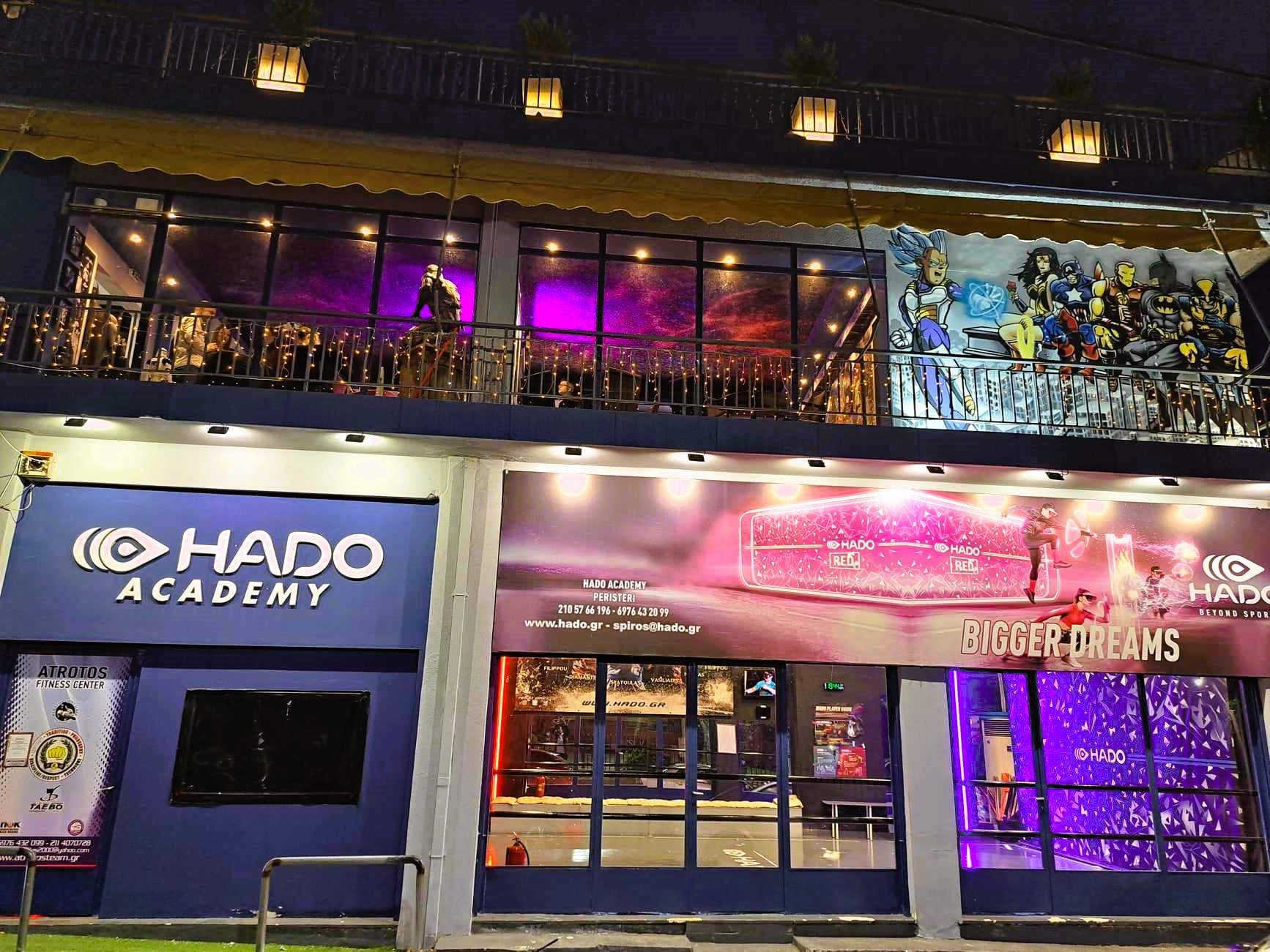 Ο πιο πρωτότυπος πολυχώρος που συνδυάζει τον αθλητισμό μέσα από τη σοφία των πολεμικών τεχνών, το πρώτο παγκοσμίως techno-sport, το HADO που χρησιμοποιώντας την τεχνολογία αιχμής επαυξημένης πραγματικότητας μεταφέρει τα esports από την καρέκλα σε αληθινό γήπεδο και συγχρόνως ζωντανεύει όλου τους αγαπημένους ήρωες σε μια φαντασμαγορική έκθεση-cafe με life size αγάλματα ενώ ο χώρος διαθέτει cinema και ένα επιπλέον cafè για πιο χαλαρές στιγμές που επιβάλλονται μετά τις πρωτόγνωρες εμπειρίες φαντασίας και άθλησης, ψυχαγωγίας και εκτόνωσης. Γιατί το HADO δεν είναι ένα απλό παιχνίδι, είναι ένα ταξίδι περιπέτειας και δράσης στον κόσμο που ονειρεύεσαι και πρωταγωνιστείς! Για να αναδείξεις όχι μόνο τις αθλητικές σου επιδόσεις αλλά και τη στρατηγική σου. Γιατί στο HADO δεν κερδίζει μόνο ο δυνατός αλλά και ο εξυπνότερος, όχι μόνο ο γρήγορος στο σώμα αλλά και στο μυαλό. Έλα λοιπόν να αναμετρηθείς με τους φίλους σου στην πρώτη αρένα επαυξημένη πραγματικότητας (Augmented reality) της Αθήνας.