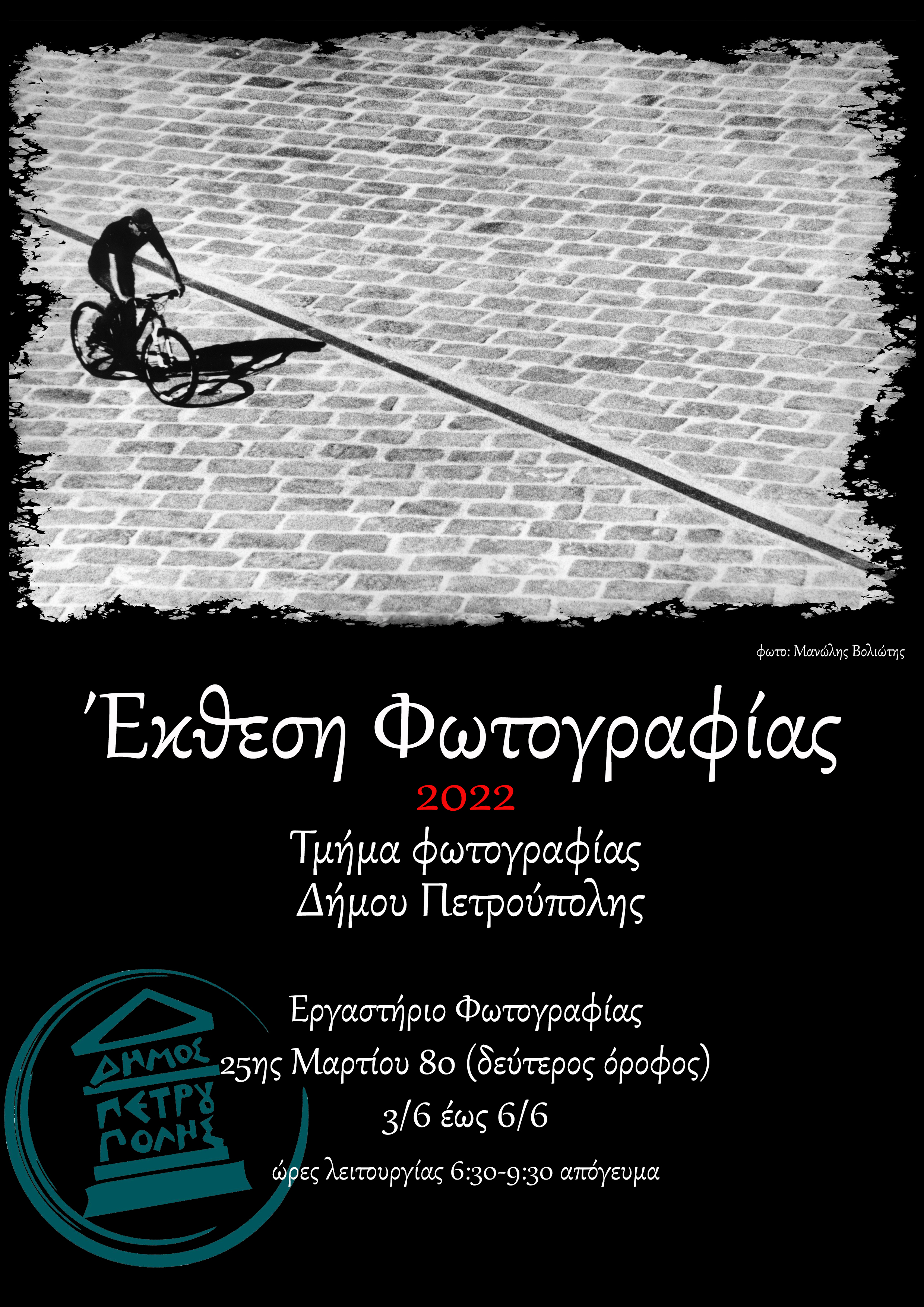 Το Τμήμα Φωτογραφίας του Δήμου Πετρούπολης θα πραγματοποιήσει έκθεση ασπρόμαυρων φωτογραφιών, παρουσιάζοντας την αξιόλογη δουλειά των μαθητών του.