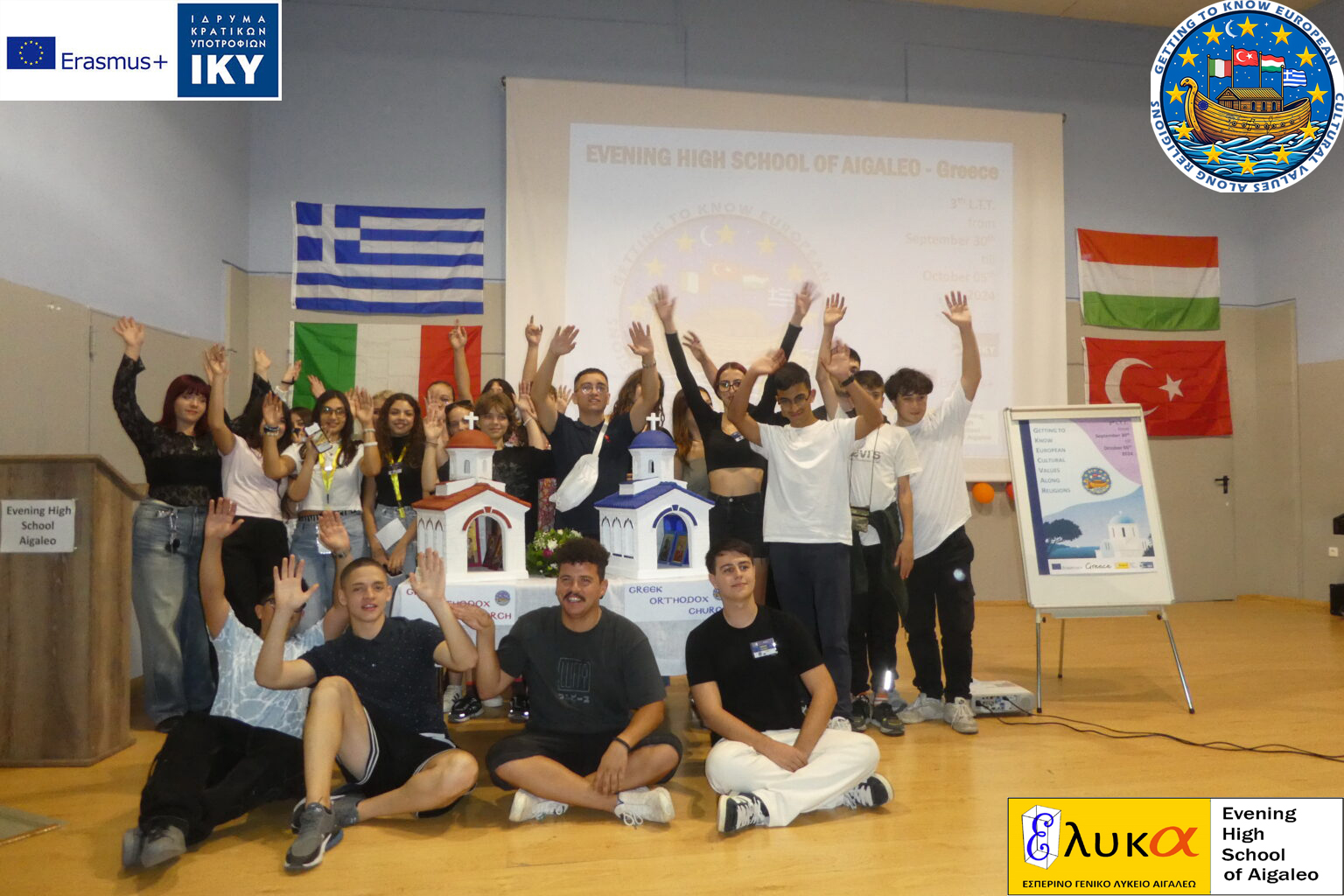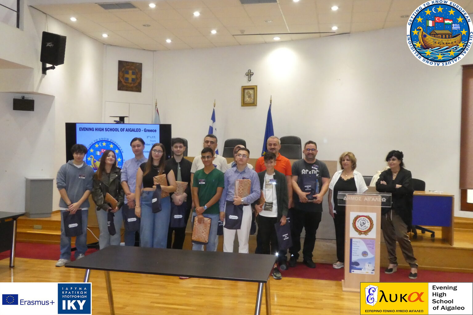 Το Εσπερινό Γενικό Λύκειο Αιγάλεω από την Τρίτη 01 έως την Παρασκευή 4 Οκτωβρίου 2024 φιλοξένησε για μια ακόμα φορά μαθητές και καθηγητές από σχολεία της Ουγγαρίας της Τουρκίας και της Ιταλίας στα πλαίσια του ευρωπαϊκού προγράμματος Erasmus+, με τίτλο “Getting to know European Cultural Values along Religions” και με αριθμό σχεδίου 2023-1-HU01-KA220-SCH-000161233.