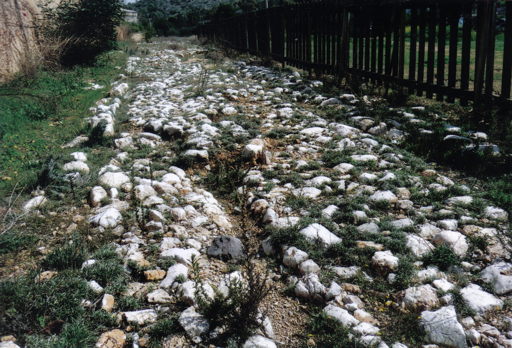 «Το πλάτος της (...) περιορίζεται εκατέρωθεν διά λίθων επίτηδες τοποθετημένων, οι οποίοι εξείχον κατά τό ήμισυ υπέρ τό έδαφος. Όπου τό έδαφος ήτο μαλακόν αντικατεστάθη δι' επιχώσεως μικρών λίθων και χώματος, επί τής επιφανείας δε τής επιχώσεως ταύτης φαίνεται ότι ετέθησαν πλακοειδείς λίθοι μετρίου μεγέθους, οί όποίοι απετέλεσαν τό έδαφος τής οδού».