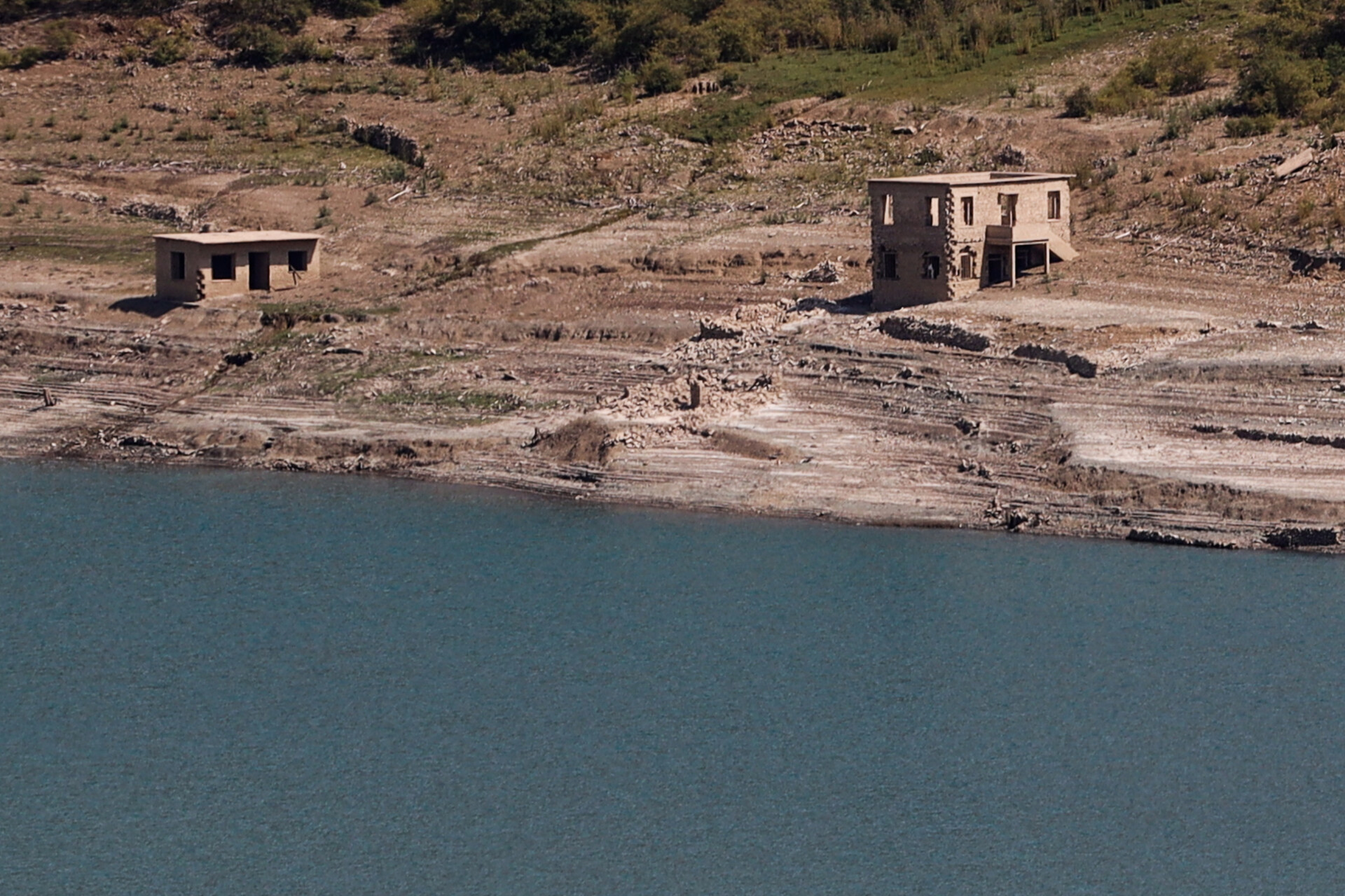 Στον Μόρνο, στο χωριό Κάλλιο Φωκίδας οι περίπου 60 κάτοικοι κάθε μέρα παρατηρούν τα νερά της λίμνης να μειώνονται και τα θαμμένα μέσα στο νερό κτίσματα του χωριού να βγαίνουν στην επιφάνεια.