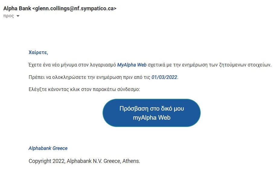Μία νέα προσπάθεια υποκλοπής σημαντικών προσωπικών στοιχείων και τραπεζικών κωδικών με την μέθοδο "phishing", αυτή τη φορά από την «υποτιθέμενη» τράπεζα Alpha.