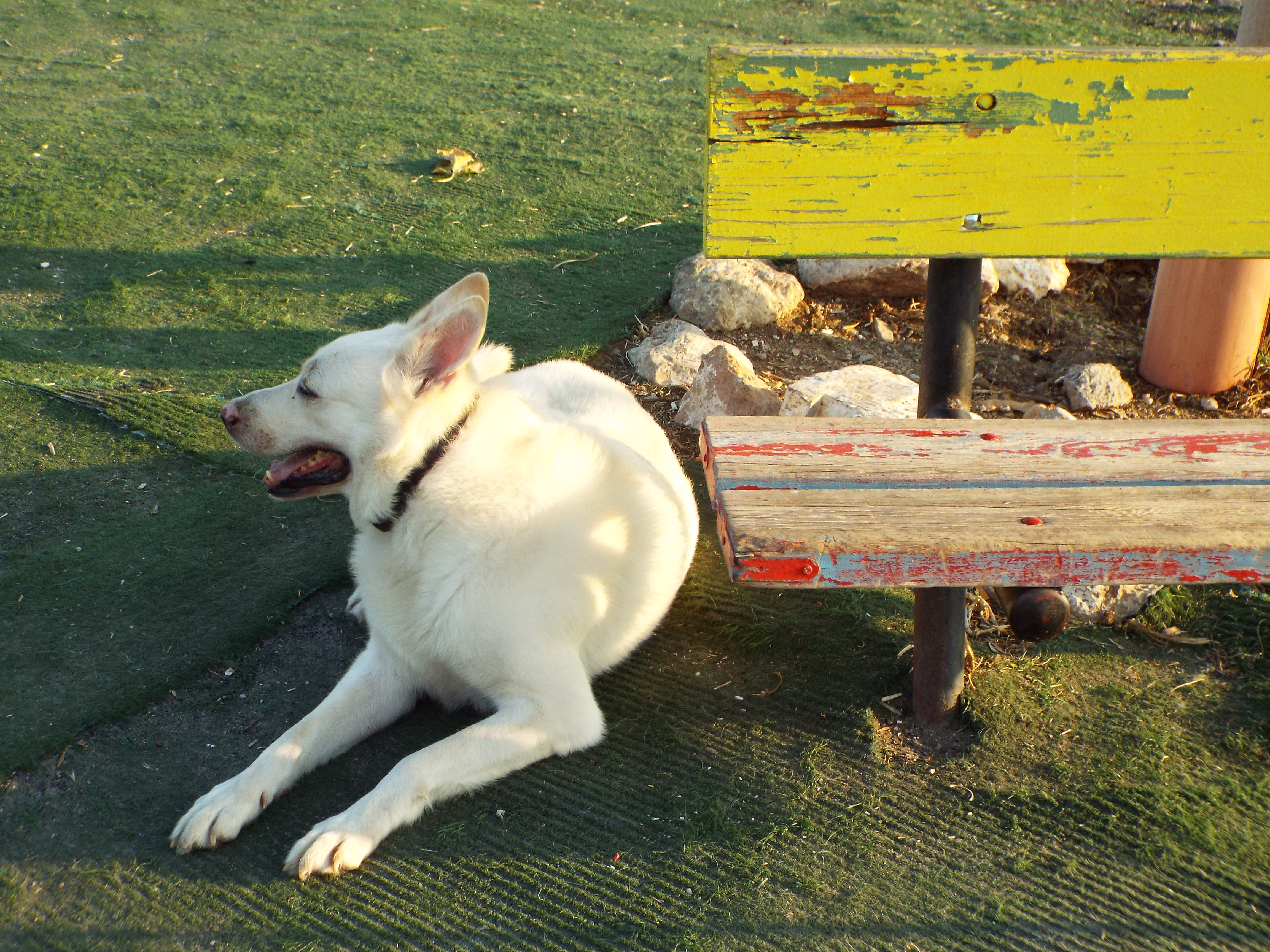 Έτσι, μία Κυριακή απόγευμα, πήρα τη φωτογραφική μου μηχανή –δυστυχώς δεν έχω σκύλο, για να είμαι πιο ταιριαστή στον χώρο- και επισκέφτηκα το πάρκο. Το πάρκινγκ πολύ εύκολο, ακριβώς μπροστά στην είσοδο του πάρκου. Υπάρχει εκεί και περίπτερο για να πάρει κανείς τις απαραίτητες προμήθειες σε φαγητό και ποτό, όση ώρα ο τετράποδος φίλος του θα τρέχει γύρω γύρω και θα διασκεδάζει. Το πρώτο που μου έκανε εντύπωση είναι το διπλό επίπεδο ασφάλειας του πάρκου. Μετά την είσοδο στην πρώτη σιδερένια πόρτα, υπάρχει ένας επιπλέον μικρός χώρος, που αν ανοιχτεί η εσωτερική του πόρτα, αρχίζει ένας δυνατός προειδοποιητικός ήχος, σημάδι πως η πόρτα είναι ανοιχτή και πρέπει σύντομα να κλείσει. Όπως ενημερώθηκα αργότερα από τον Πρόεδρο, αυτό έγινε γιατί πολλοί, ανεύθυνα, άφηναν την πόρτα ανοιχτή φεύγοντας και αναγκάζονταν να κυνηγούν τα σκυλάκια στον παράδρομο του Κηφισού, κάτι όχι και τόσο ασφαλές για τα ίδια. Έκλεισα την πόρτα πίσω μου, ο ήχος σταμάτησε και με την είσοδό μου δέχτηκα το ευγενικό καλωσόρισμα ενός λευκού πανέμορφου σκύλου που ήρθε να με προϋπαντήσει. Αφού με μύρισε και ..γνωριστήκαμε, προτίμησε την παρέα των υπόλοιπων ομοειδών του.